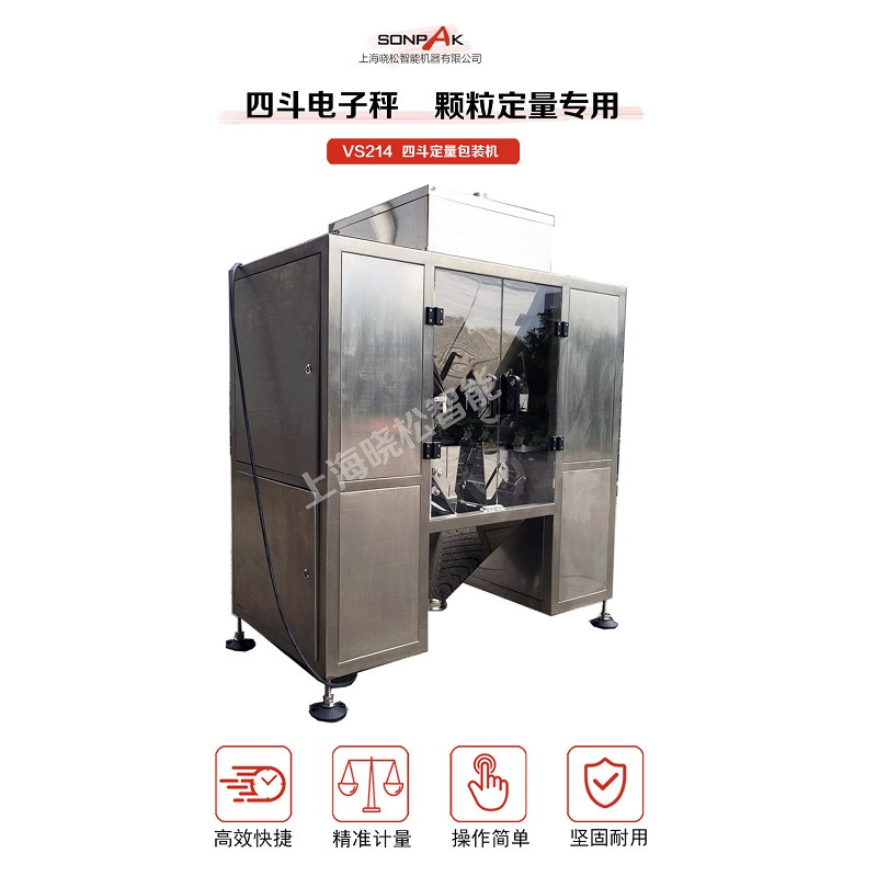 更多VS214四斗定量包裝機詳細報價,生產交貨周期,售后服務,使用說明請于曉松智能官網業務部聯系或致電:021-59162108